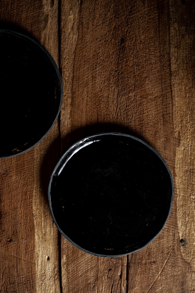 Piezas rústicas hechas a mano de la línea gres black, plato de 22cm, Disponible también en blanco y tostado.